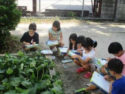 1学期に学年の畑に植えたさつまいもは、つるも伸び、ずいぶん大きく生長しました。