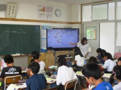 縮図の学習で、電子黒板を利用した先生の説明をきちんと聞いていました。