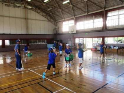 いつもは神明グラウンドで練習しますが、今日はグラウンド状態が悪いため本校の体育館で行いました。