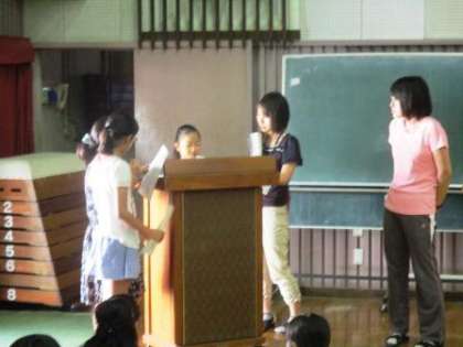 大放課に児童会選挙立会演説会のリハーサルを行いました。