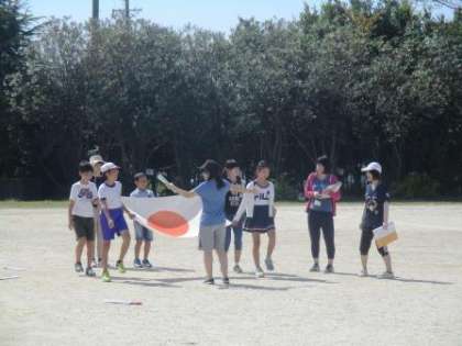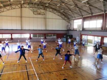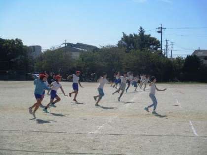 大放課は赤白の応援団が運動場と体育館で仕上げの練習です。