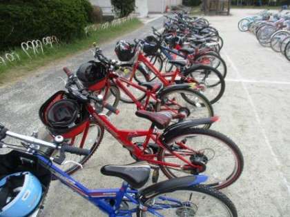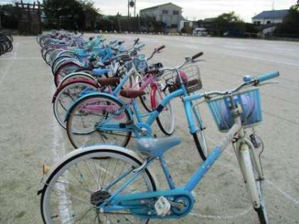 3年生の自転車が運動場に並べてあります。