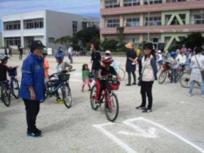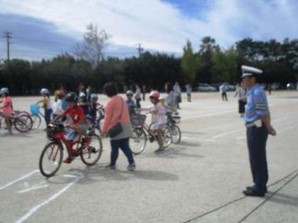 常滑警察のお巡りさん、交通指導員さん、交通安全協会の方に指導していただきました。