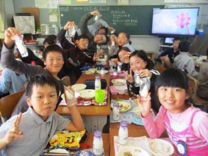 後ろで牛乳まで持っている子は?