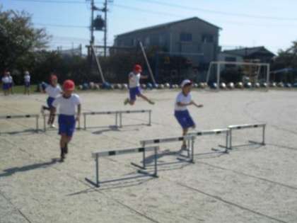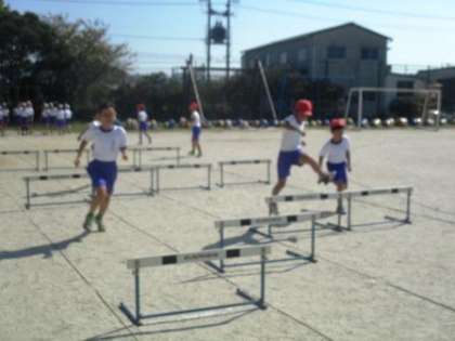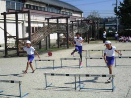 4年1組の体育でハードル走を行いました。