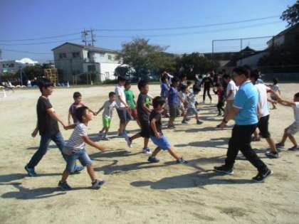 6年生が準備してくれた遊びで思いっきり汗をかきます。