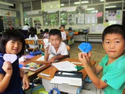 1年1組では折り紙で「かぼちゃのおばけ」を作りました。