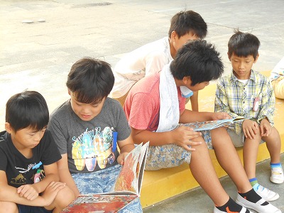 5年生は2年生に合った本を選び、一生懸命読んでいました。