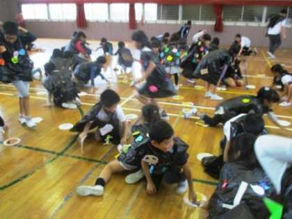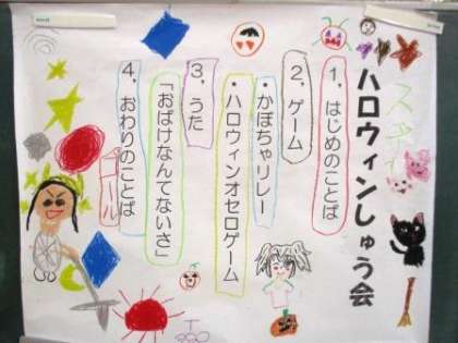 2年生がタイの子どもたちを招いて、ハロウィン集会を開きました。