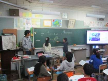 5年1組は理科「天気の変化」で気象図をうつし、天気の変化や雲の動きを考えさせていました。