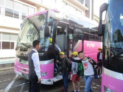 ピンクのバスが子どもたちには人気です。