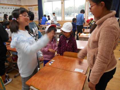 あいにくの雨でしたが,6年生のお兄さん・お姉さんと楽しく放課を過ごすことが出来た1年生でした。