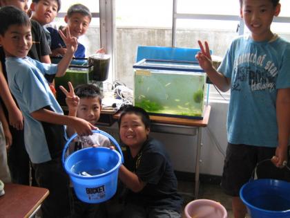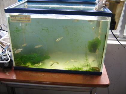 蟹,ボラの稚魚(?確かではありません),わかめなどを水槽で大切に飼っています。