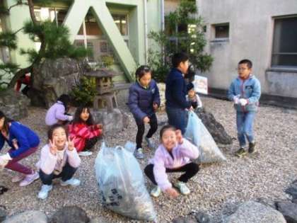 外そうじの2年生は落ち葉をたくさん集めてくれました。