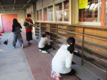 体育館のげた箱も全部拭き取ります。
