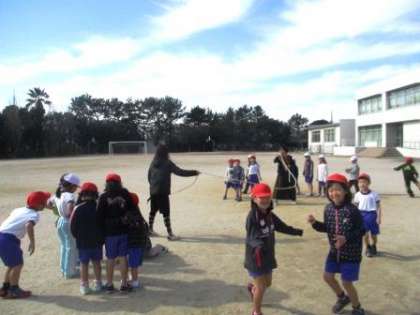 1年生にとって、回っている縄の中に入ることは難しいです。