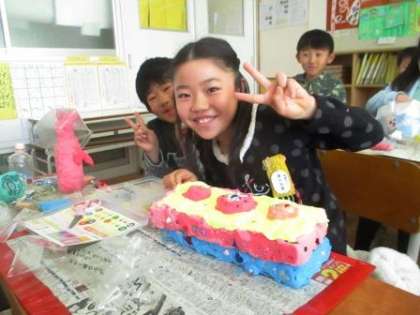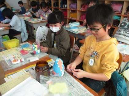 カラフルな紙ねんどを使って、「ハッピー小物入れ」を作っていました。