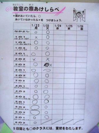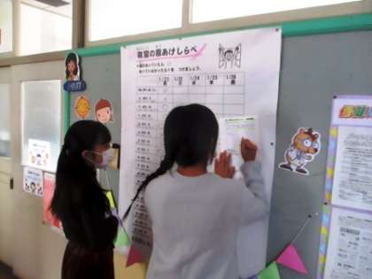今週、保健委員会では「教室の窓開け調べ」を行っています。