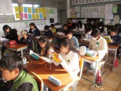 4年生の朝読書の様子です。(4の2:上、4の1:下)