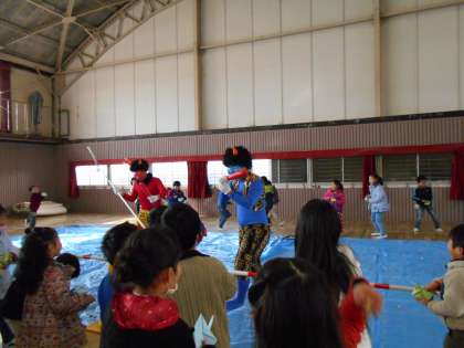 豆まきの歌を歌ったり,クイズやゲームをして楽しく遊びました。
