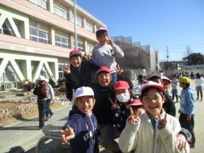 大放課、4年1組の子どもたちが朝礼台に集まっていました。