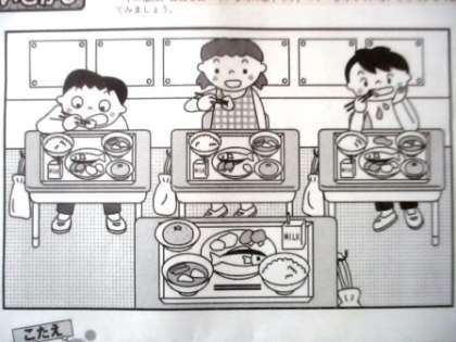 2月献立表の裏面に「食事マナーのまちがい探し」が載っていました。