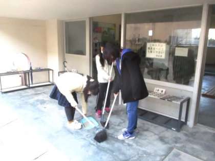 5年生の女の子が昇降口の掃除をしていました。