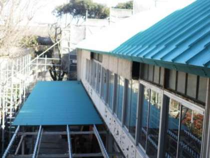 体育館横の屋根の取り付けが始まりました。