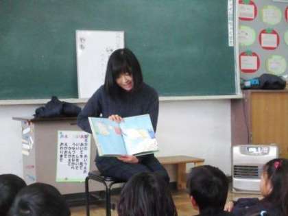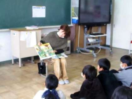朝の10分間、全教室で子どもたちに本を読んでくれました。