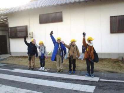 蒲池からの通学路は道幅が狭いですが、時々通勤の車が通ります。