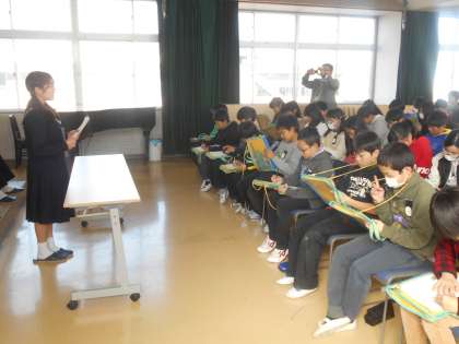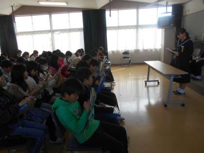 子どもたちは熱心にメモを取り,聞きたいことを質問しました。「大変なことは何ですか」の質問に,4人とも「テスト週間」と答えていました。しかし,今日の話を聞いて,「中学校へ行くことが楽しみ」という気持ちもふくらみました。