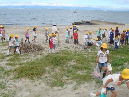 本日1時間目に5・6年生で海岸へ掃除にいきました。