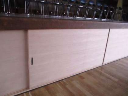 舞台下のイス収納庫の扉がきれいになりました。