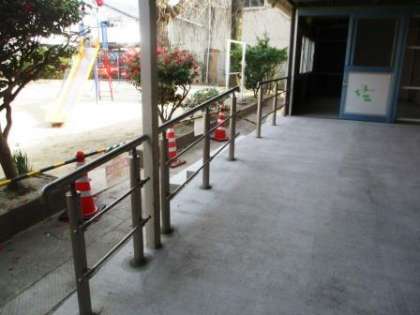体育器具庫につながるスロープに柵(手すり)が設置されました。