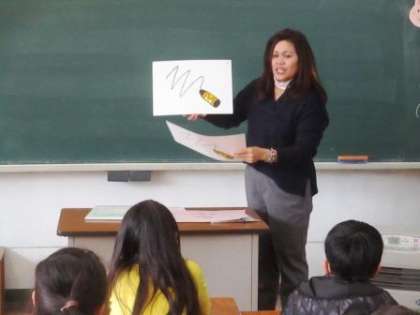 1年3組でマリヴィック先生が授業をしました。