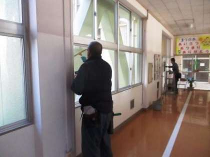 学校中の全てのガラスを磨いてくれます。