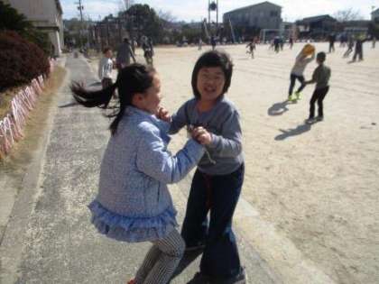 1年生の女の子が手をつないで踊っていました。