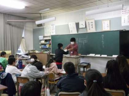 本来なら校長から一人一人に渡すのですが、インフルエンザの影響を考慮して放送での朝会となりました。