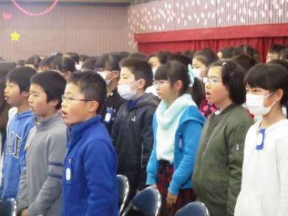 4〜6年生が合同で卒業式の練習を行いました。