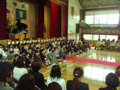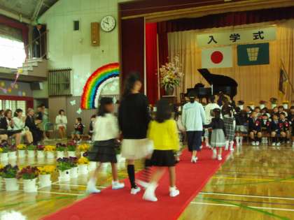 少し緊張しながらも、6年生のお兄さん、お姉さんと手をつなぎ、入場しました。