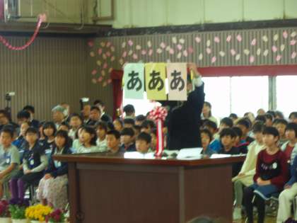 校長からは、鬼崎北小の「児童のめあて」、「あいさつ」「あつまり」「ありがとう」の三つの「あ」のお話をしました。