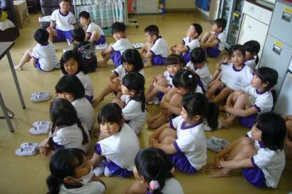 1年生は2時間目に身体測定を行いました。保健室の中で、自分の順番がくるまできちんと座って待っています。