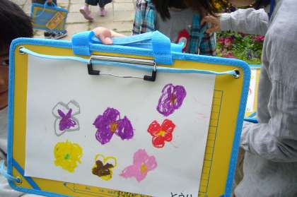 みんな色とりどりの花を画用紙に咲かせることができました。
