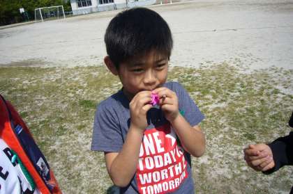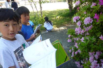 花だんで草花の観察をしたりツツジを見つけて蜜を吸ったりと、実感を伴った活動をしていました。