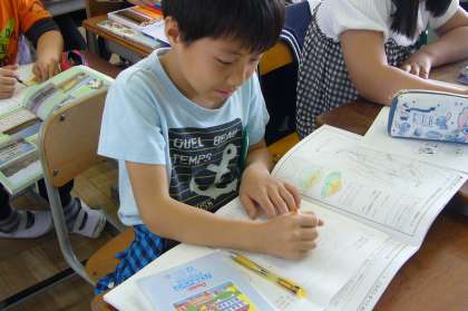 作業帳を使い、上から見たときと横から見たときの高さごとに色分けをして、正しく理解できているか、確かめました。