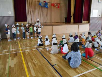 みんなで大きな声で「こいのぼり」の歌を歌いました。元気いっぱいに歌うことができていて、素晴らしかったです。
