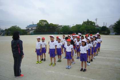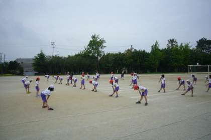 雨が降り出す前の時間、体育で50m走の計測をしました。