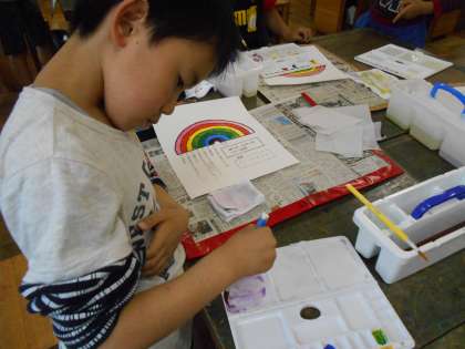 筆を使ってパレットをきれいにする「エコ片付け」も上手にできました。