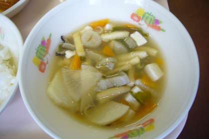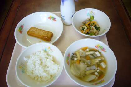 今日は鶏肉や鮭は入っておらず、野菜がふんだんに入ったのっぺいじるでした。