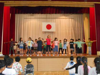 そのあとは,2組の朝の歌で踊っているダンスを3クラス全体で行いました。